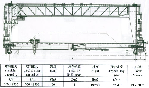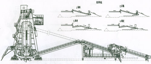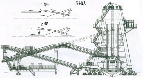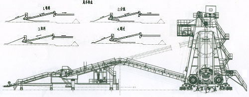 分类:经历了对第一、第二代机型的改进形成目前的第三代机型,现已经生产近七十台,在全国三十多个大型燃煤电厂使用。第三代机型克服了第一、二代进行活动梁内胶带机布置三层胶带,检修维护困难的弊端,机上三段胶带机布置,堆取料胶带机、取料胶带机等高布置,取消了取料小皮带机,增加堆取变换机构(本公司独创的转环式孪换机构已获国家专利),尾车由堆取变换机构实现堆料位、取料位的变化。